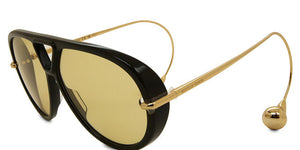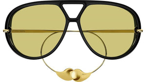 Gafas de sol Bottega Veneta de estética aviador contemporánea, con una silueta envolvente y un diseño estructural distintivo. El modelo BV 1273 003 combina una montura negra de carácter sólido con lentes amarillo claro, logrando un equilibrio entre diseño vanguardista y elegancia funcional.