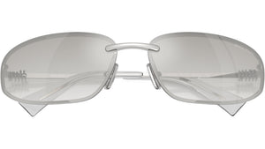 - Lentes espejados en tono gris claro, ideales para un look vanguardista.