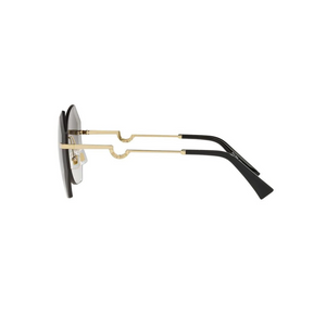 - Diseño exclusivo: El marco de forma ovalada en color dorado y patillas decoradas con detalles de pedrería añaden un toque de lujo y glamour.